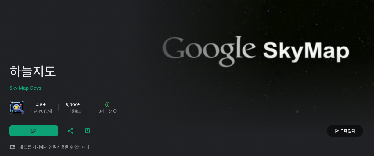Sky Map은 구글에서 개발한 오픈소스 기반 별자리 앱입니다. 광고가 없고 용량도 작아서, 저사양 기기나 간단한 별 확인용으로 활용하기 좋습니다.