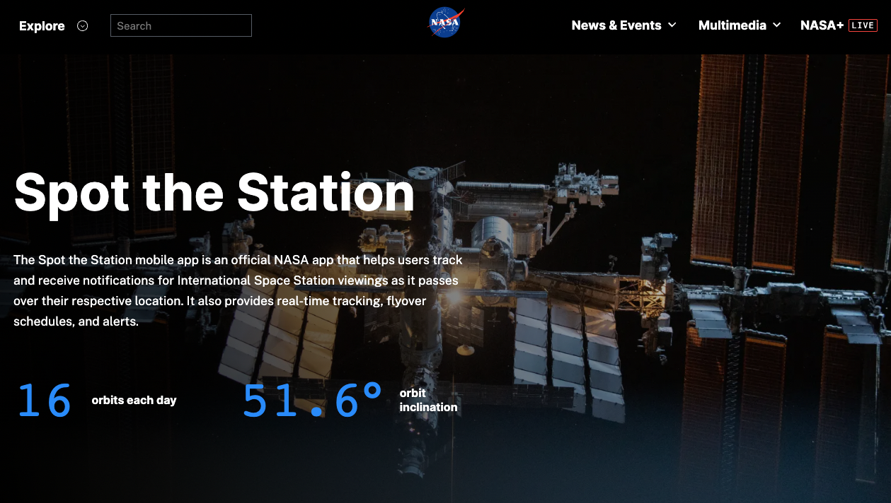 - 공식 앱으로, 위치 기반으로 ISS 관측 시간, 방위, 고도 등의 정보를 제공합니다.