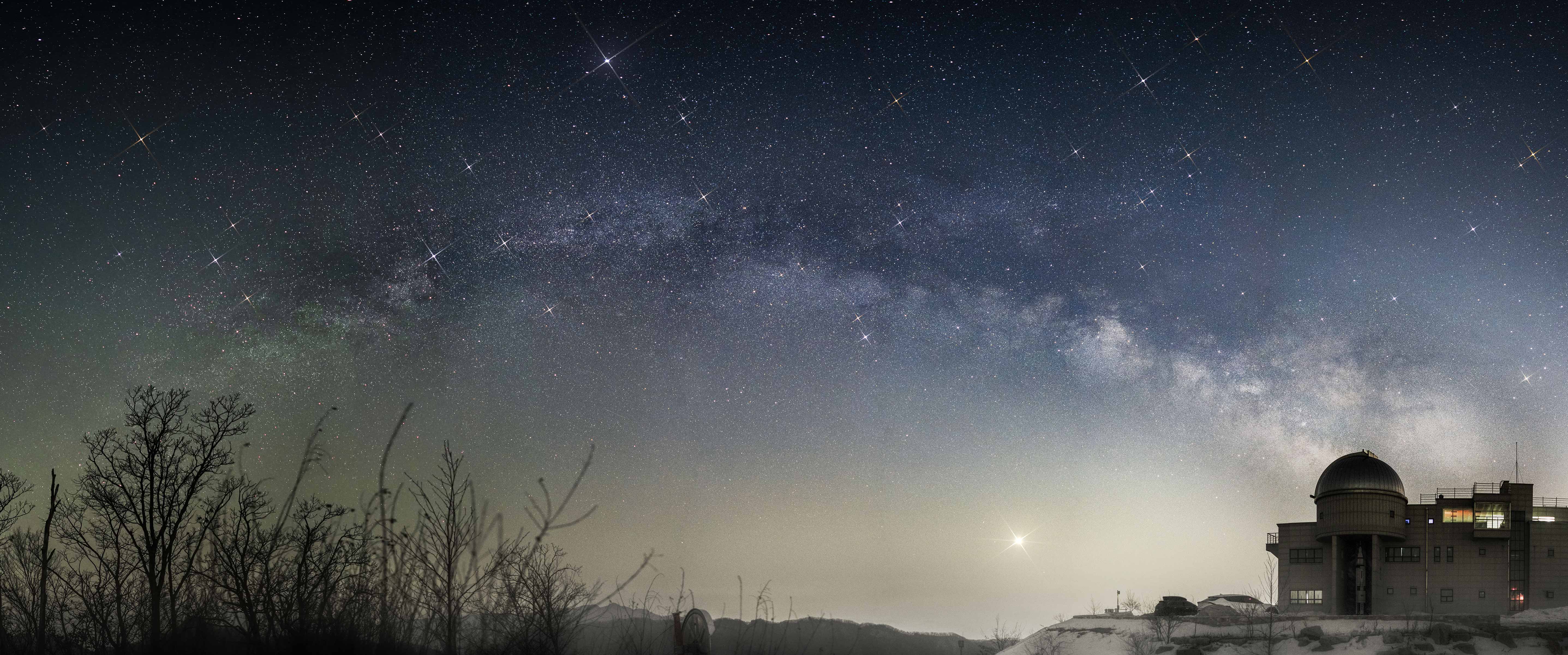은하수는 우리 은하(Galaxy)의 중심 방향을 바라볼 때 보이는 수천억 개의 별들의 집합체입니다. 낮은 광해, 맑은 하늘 조건에서는 그 띠가 하늘을 가로지르며 흐릿하게 보입니다.