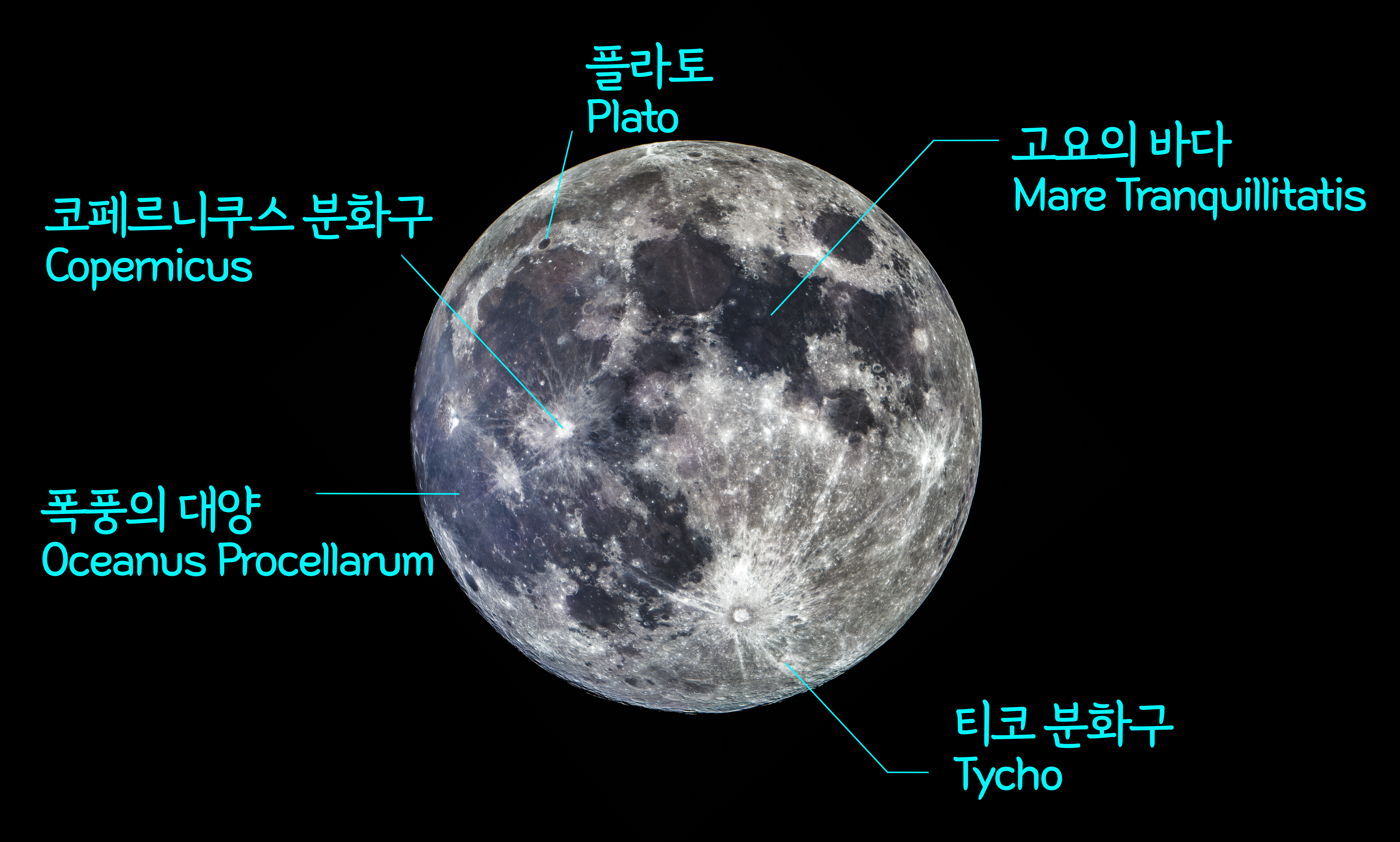 그 무늬들, 그냥 무늬가 아닙니다. 달에도 실제 지명과 지형이 있고, 각각 이름과 역사가 있는 천문 지도처럼 구성되어 있어요.