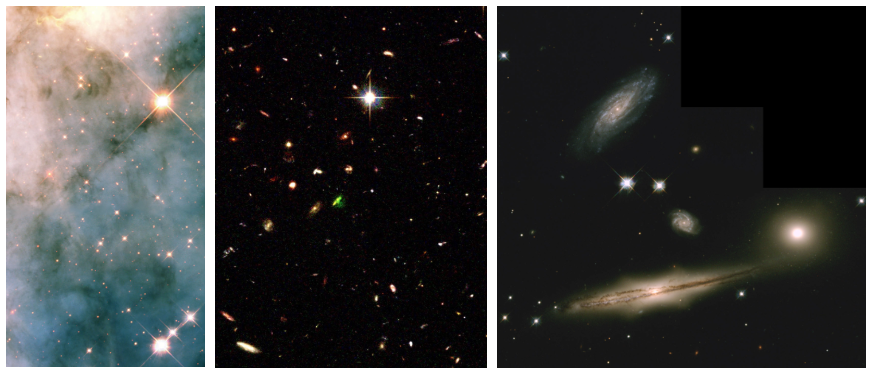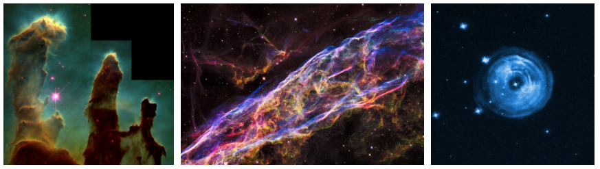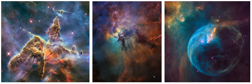 모든 이미지는 NASA 허블 우주망원경의 실제 관측 데이터입니다.