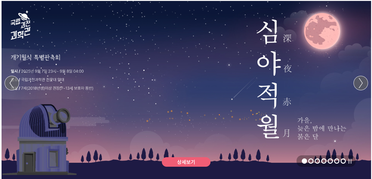2025년 9월 7일 밤부터 8일 새벽까지, 국립과천과학관은 ‘붉은 달’을 테마로 한 특별 야간 프로그램을 운영합니다.